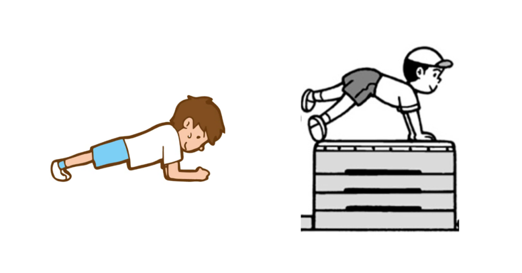 腕支持は、例えば腕立て伏せの姿勢や、体幹トレーニングとしても有名な「プランク」に見られるフォームです。