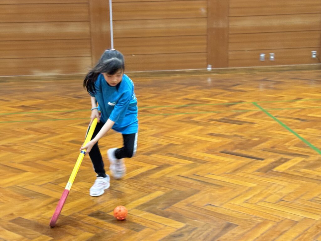 アイスホッケー同様スティックでボールを操り、敵陣ゴールに入れて点数を競う競技です。